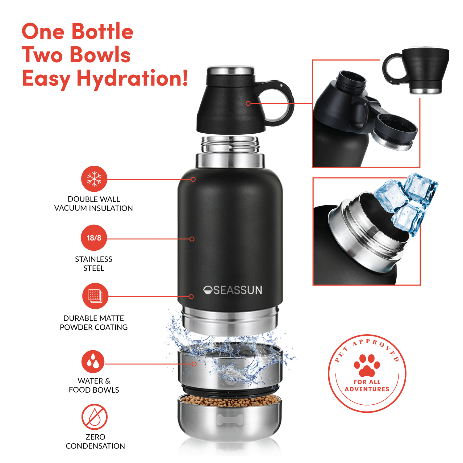 Whether hitting the trails, heading to the park, or fun at the beach, the SEASSUN Pooch Pack is a versatile dog water bottle and crossbody bag for walking, hiking, dog training, fetching and frolicking.